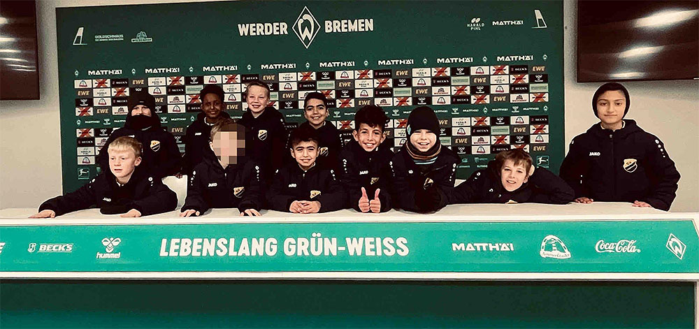 Anschließend ging es weiter zum nächsten Programmpunkt: eine zweistündige Stadionführung durch das legendäre Weserstadion. Die Nachwuchskicker tauchten tief in die Welt des Profifußballs ein, erkundeten die Katakomben, warfen einen Blick in die Kabinen der Bundesligastars und liefen durch den Spielertunnel direkt ins Stadion ein. Staunen und Begeisterung begleiteten jeden Schritt.